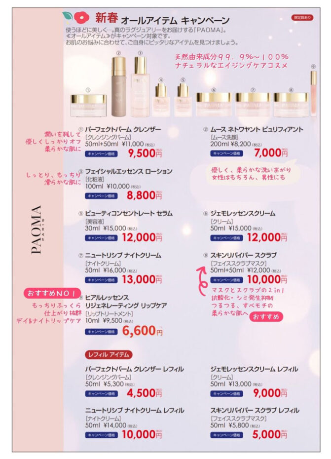 その他、パオマは、セラムソレール以外は全品キャンペーン継続中です。