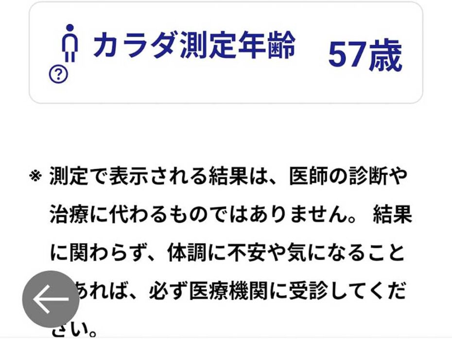 さて、それで、母の体年齢はどうかというと、実年齢70歳、体年齢57歳でした!!
