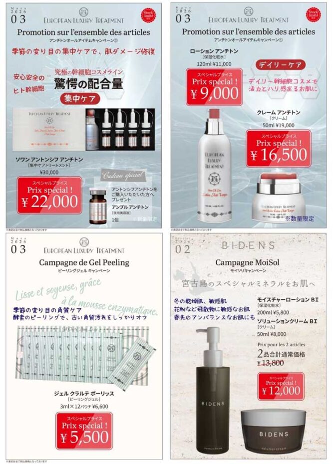 今月大いにご活用いただきたいのは、ミネラルブースターとローションアンチトン!こちらの2品、ブースター効果がすごく高くで、今使っていますが、とても使い心地がいいです。