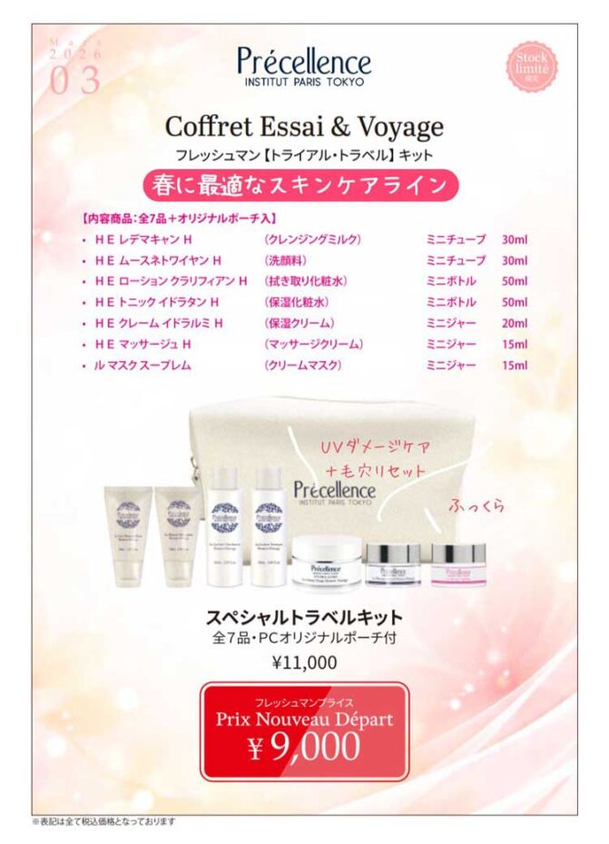 また、お肌の不調が気になる方は、プレセランスのトラベルキットで2週間の肌すこやか集中ケアを。