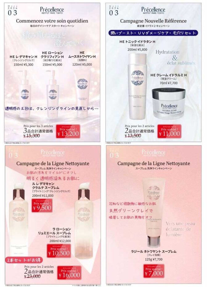 また、3月から紫外線が徐々に強くなってくるので、アンチエイジング×ブライトニングのスープレムもおすすめ。これから日焼け止めもしっかりしたものを使うと思うので、それをオフするときに、滑らかでも汚れをしっかり落とすデマキャンクラルテスープレムが使いやすいし、ローションリュミエールスープレムはお肌のくすみ、黄ぐすみを抑え、透明感を引き出します。