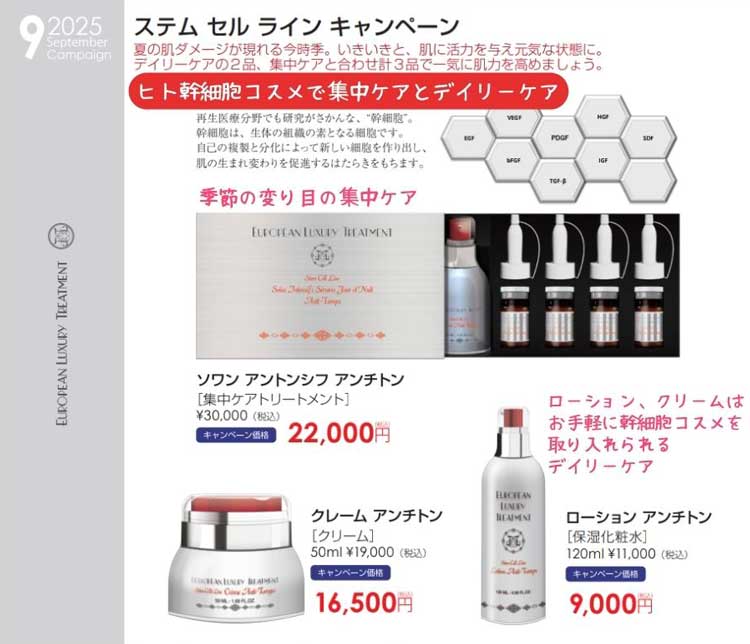 ヒト幹細胞順化培養液コスメ、アンチトンシリーズが全品キャンペーンに追加されました。